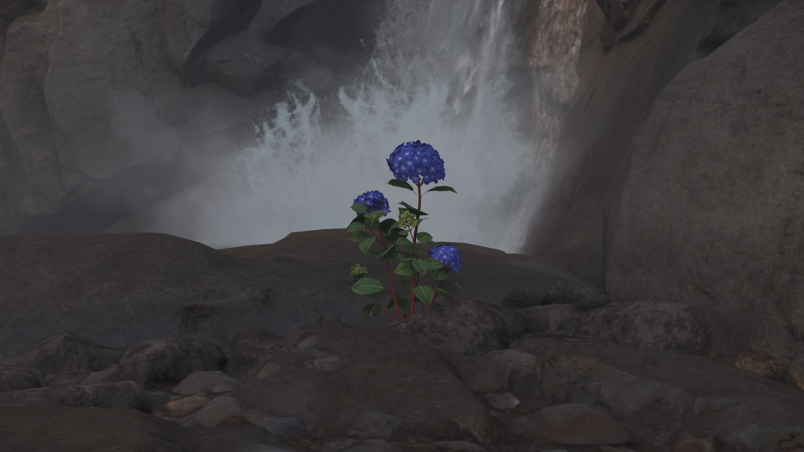 From the rock slide, head forward and follow the stream of water that will take you to a blue flower growing among the grass just to the left.